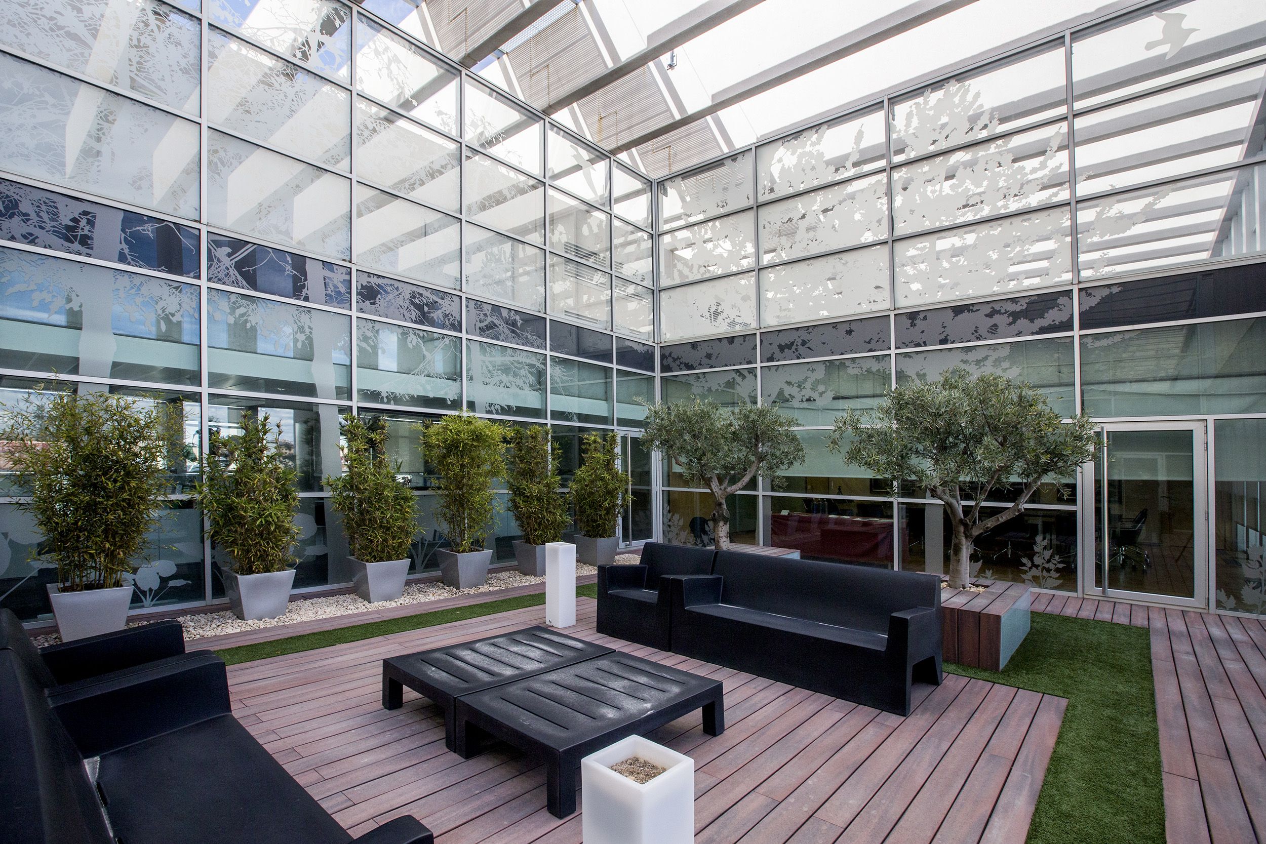 The use of renewable energies, such as photovoltaic panels, solar thermal panels, and geothermal systems, creates an office complex prepared for future transformations. Additionally, a series of passive measures are integrated, including efficient glazing and solar protection devices to prevent extreme heat in summer and severe cold in winter.