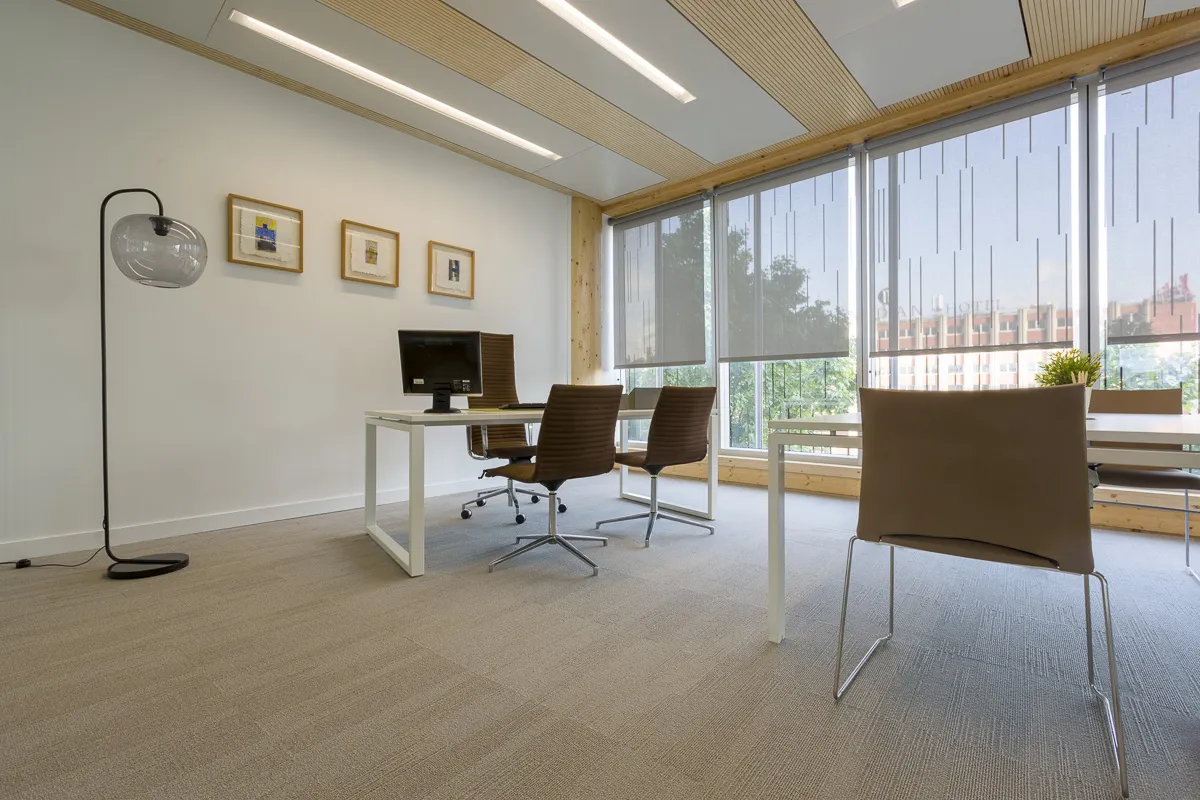 The Premium Plus shades with Screen fabric efficiently filter light and offer a uniform and pleasant view to the outside, while preventing glare in workspaces.