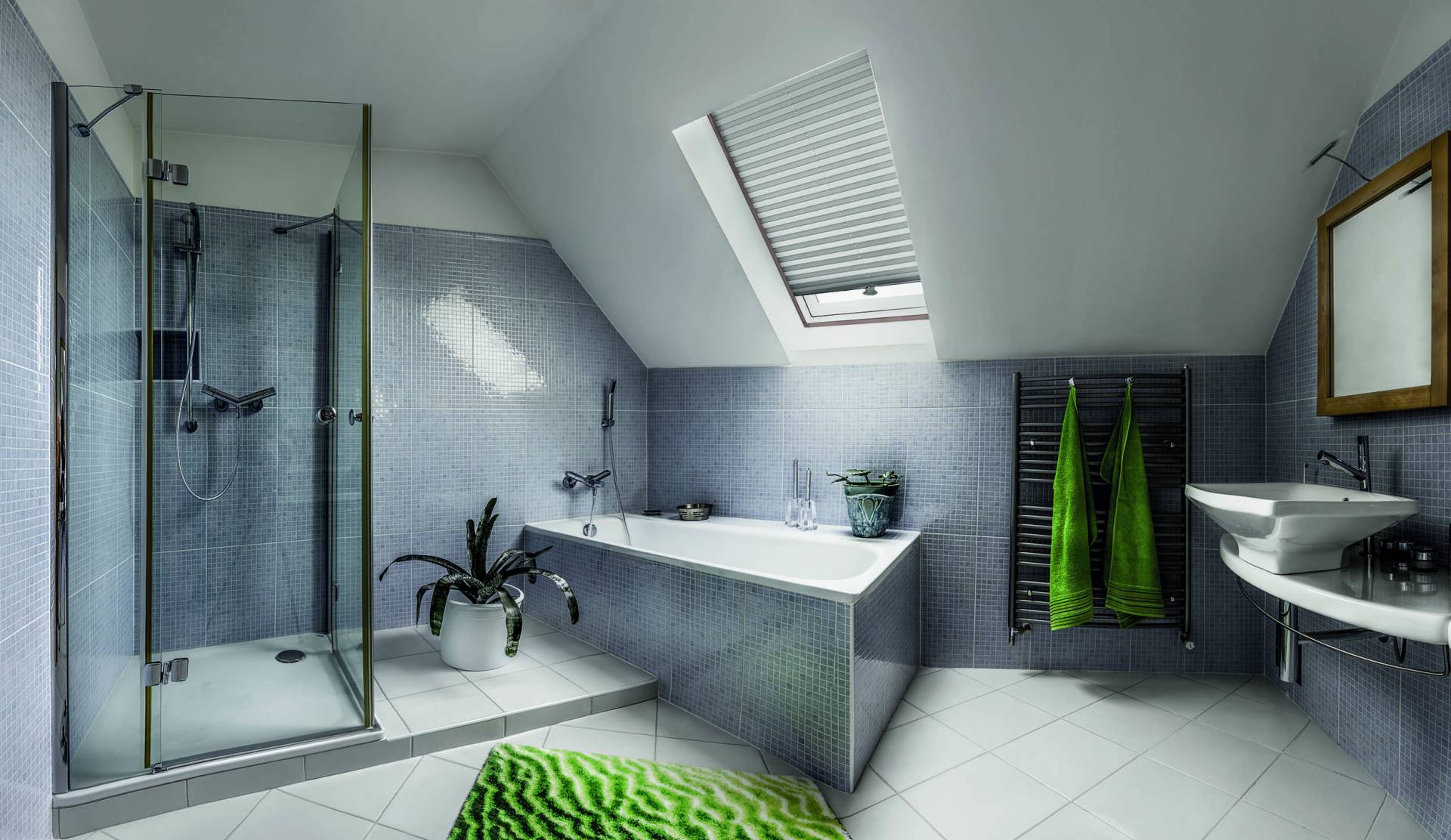 The Imagine Skylight adapts to all types of sloped windows up to 60º, offering visual comfort and light control in hard-to-reach spaces such as attics, skylights, and greenhouses.