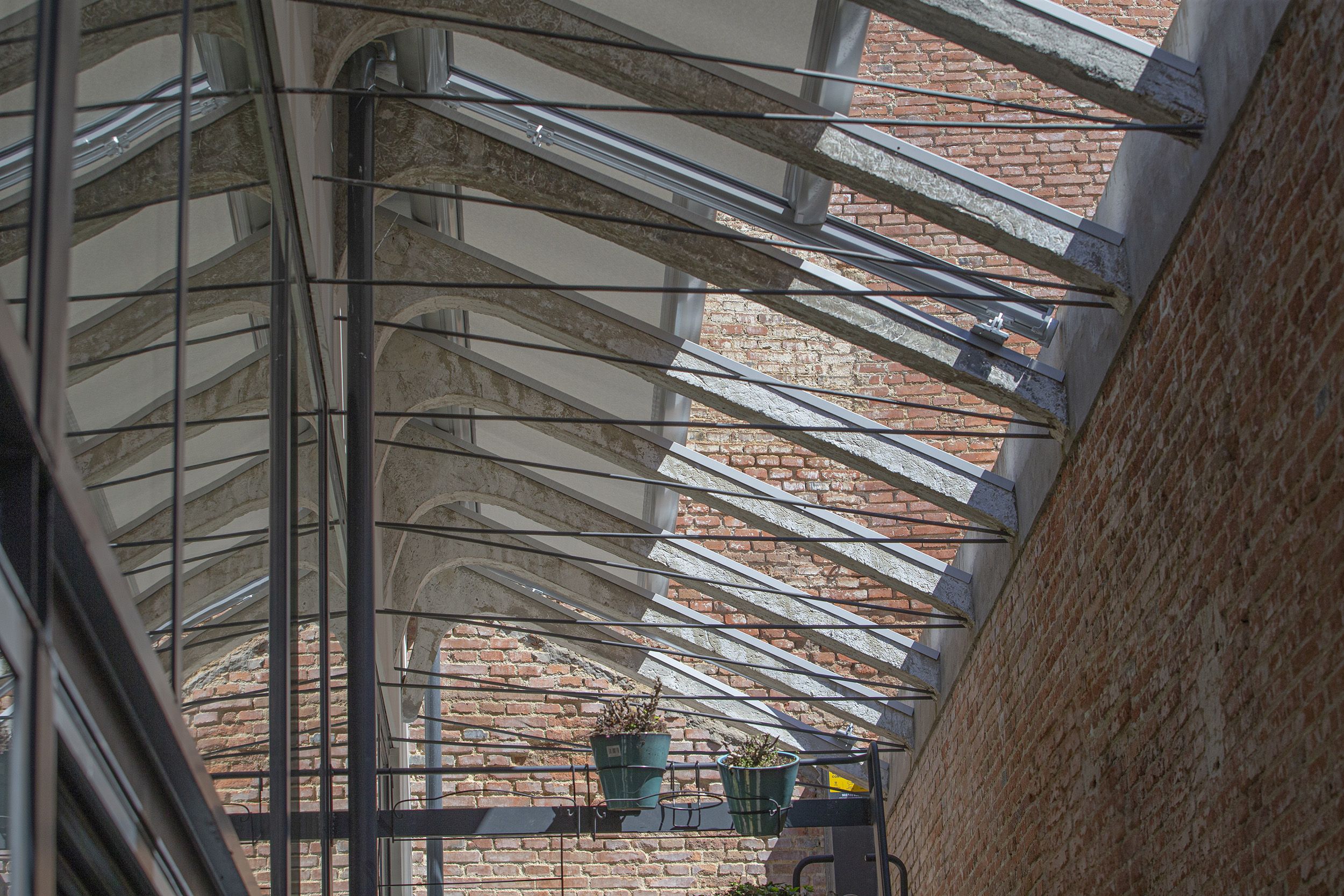 Pour ce projet mixte, Bandalux a proposé une combinaison de systèmes adaptée aux espaces résidentiels comme professionnels. Dans ce cadre, Veranda Plus s’avère particulièrement adapté, s’intégrant parfaitement à l’ancienne structure sans la dénaturer.