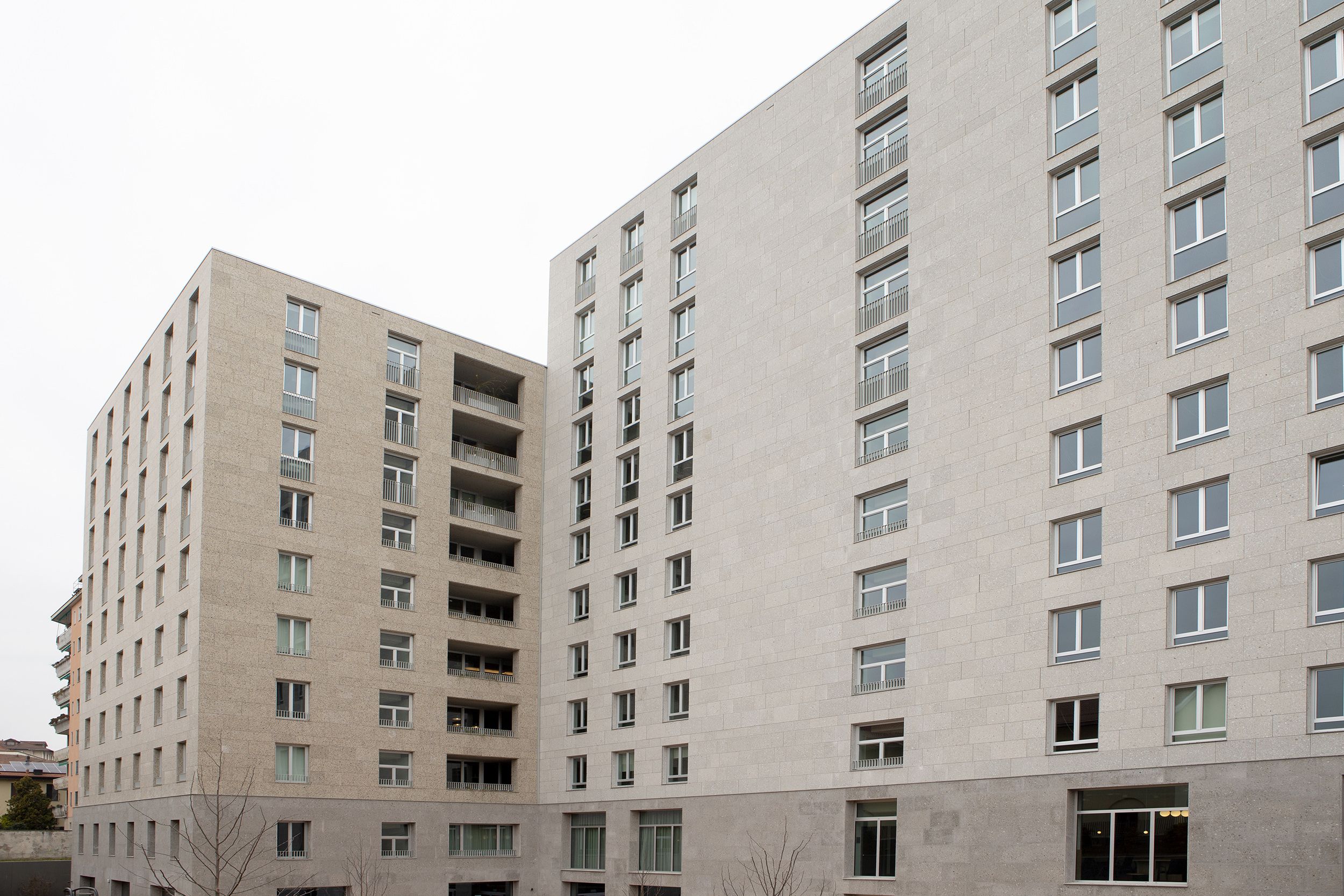 Le bâtiment d’origine est divisé en deux parties : la partie inférieure s’adapte et s’ouvre sur la rue principale, tandis que la partie supérieure est modelée pour offrir une vue presque à 360° sur la ville de Milan.