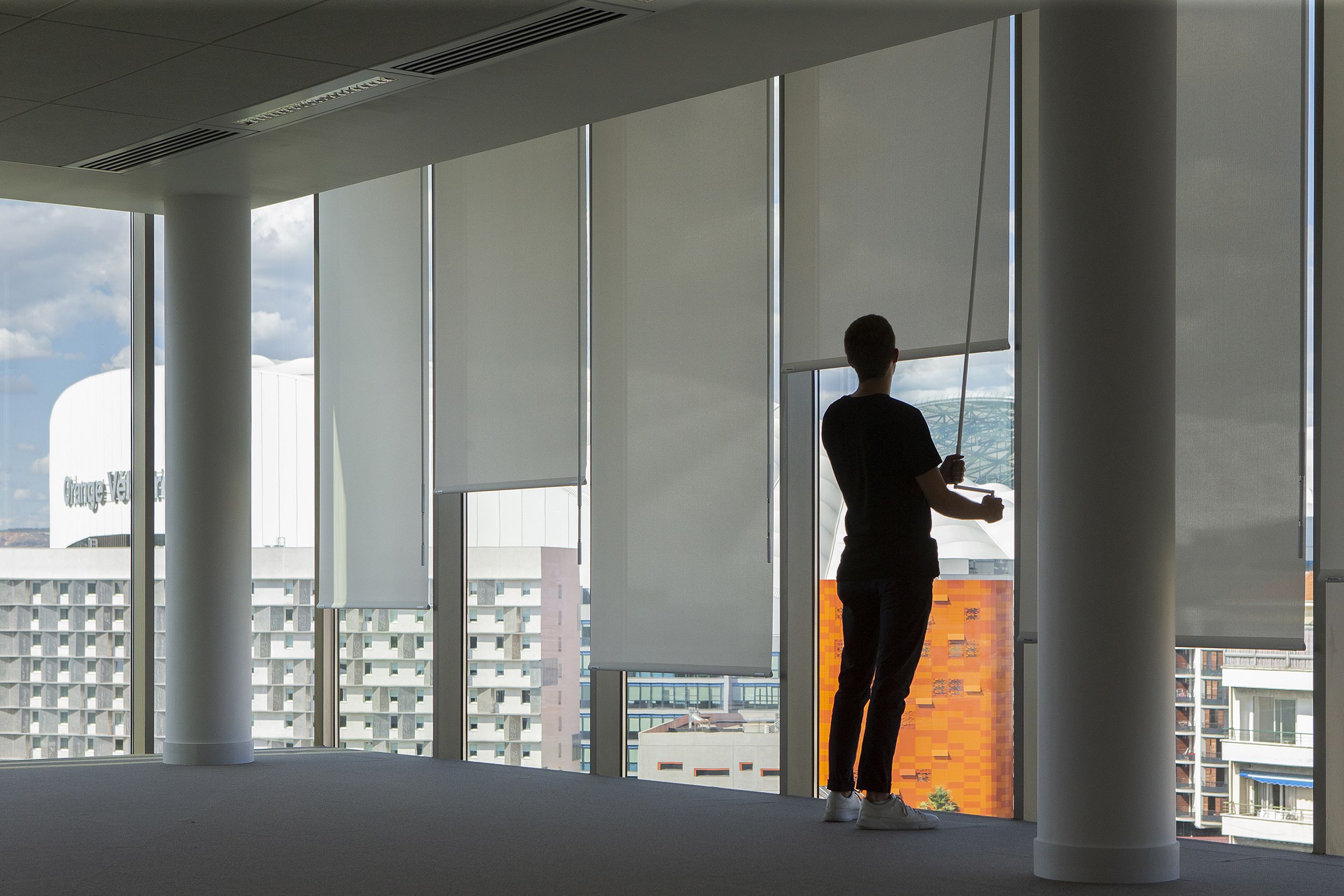 Il tessuto Screen si integra perfettamente nel sistema, offrendo efficienza termica e comfort visivo oltre a un valore estetico. Inoltre, i nostri prodotti hanno contribuito a ottenere la Certificazione HQE per uffici e servizi.