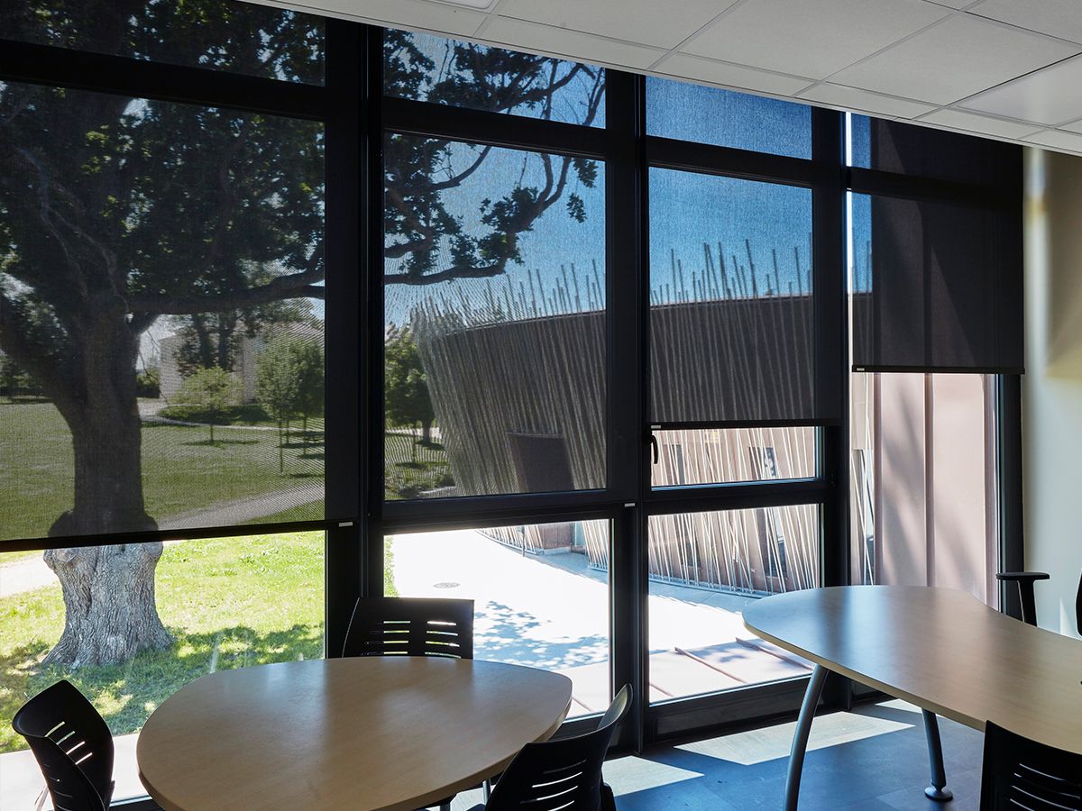 La varietà delle tende Bandalux ha trovato il suo posto in modo naturale: le schermature solari offrono una gestione ottimale dell’apporto solare, contribuendo così al miglioramento dell’efficienza energetica degli edifici e al comfort dei collaboratori; e le tende a rullo con tessuti 100% oscuranti permettono di gestire la completa oscurità necessaria nella sala del consiglio, grazie all’installazione di tende di grandi dimensioni.