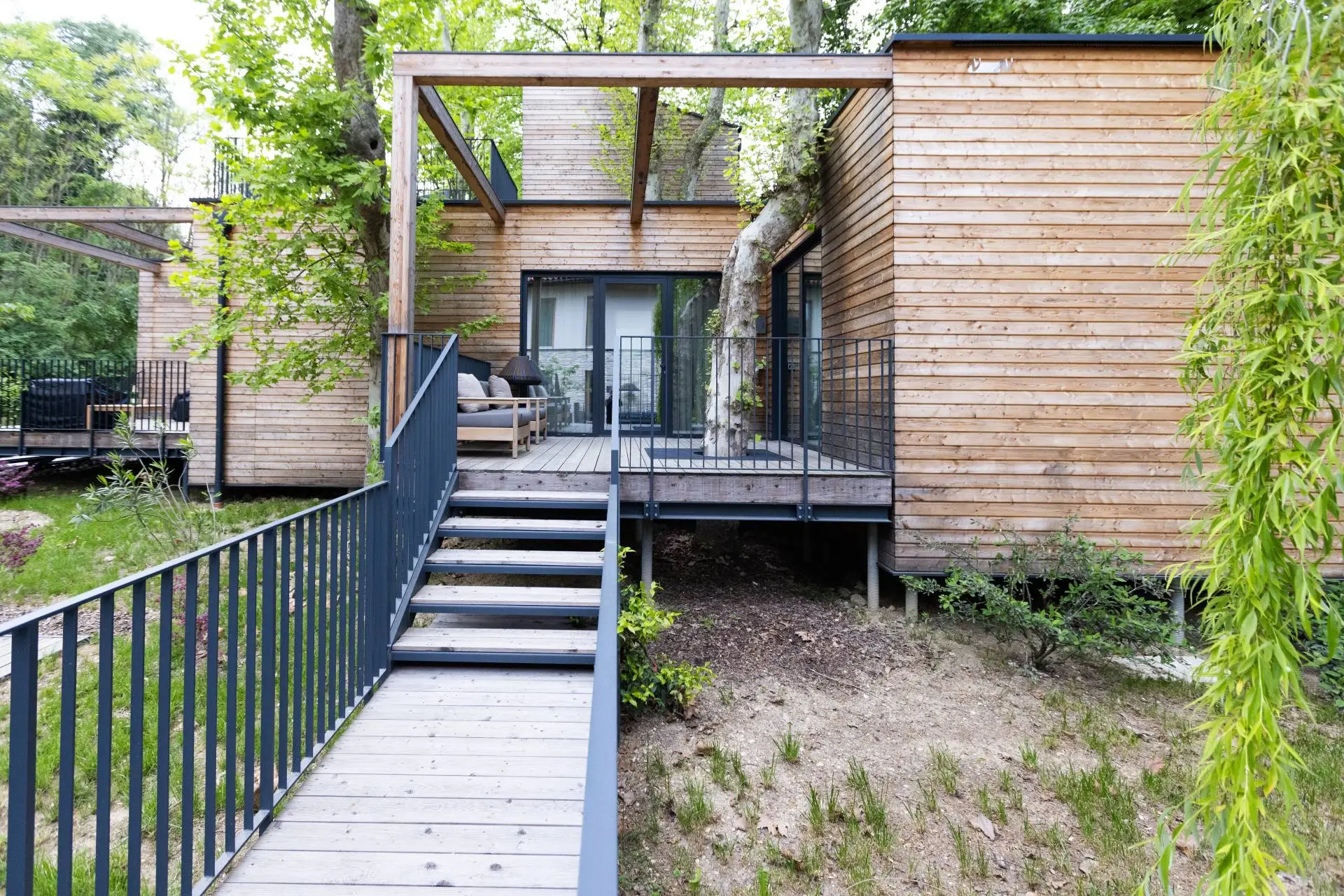 Ogni suite è stata attentamente posizionata per preservare gli alberi esistenti, mantenendo l’armonia del paesaggio.