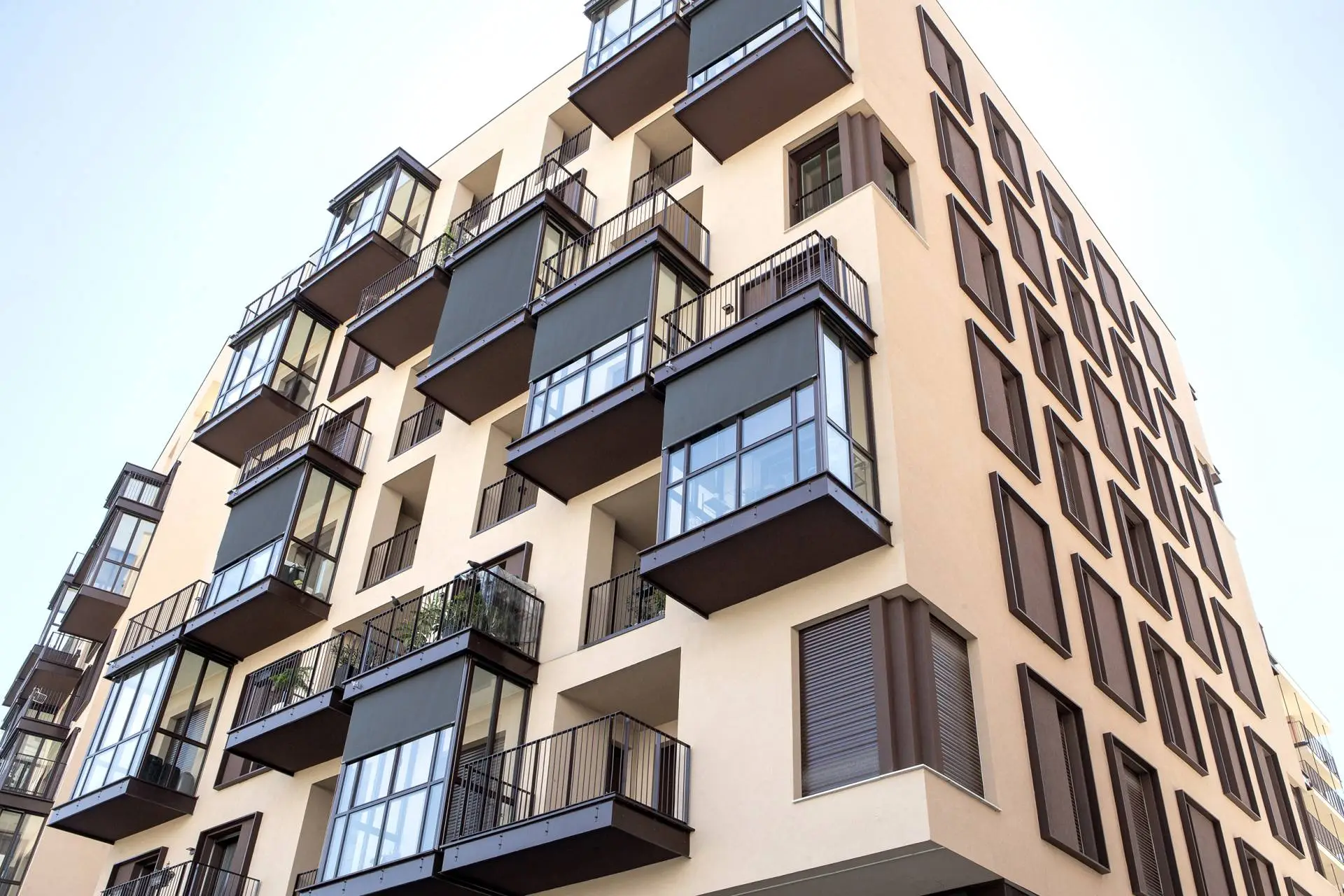 Le strutture residenziali presentano tre forme distinte: logge, balconi e serre/finestre.