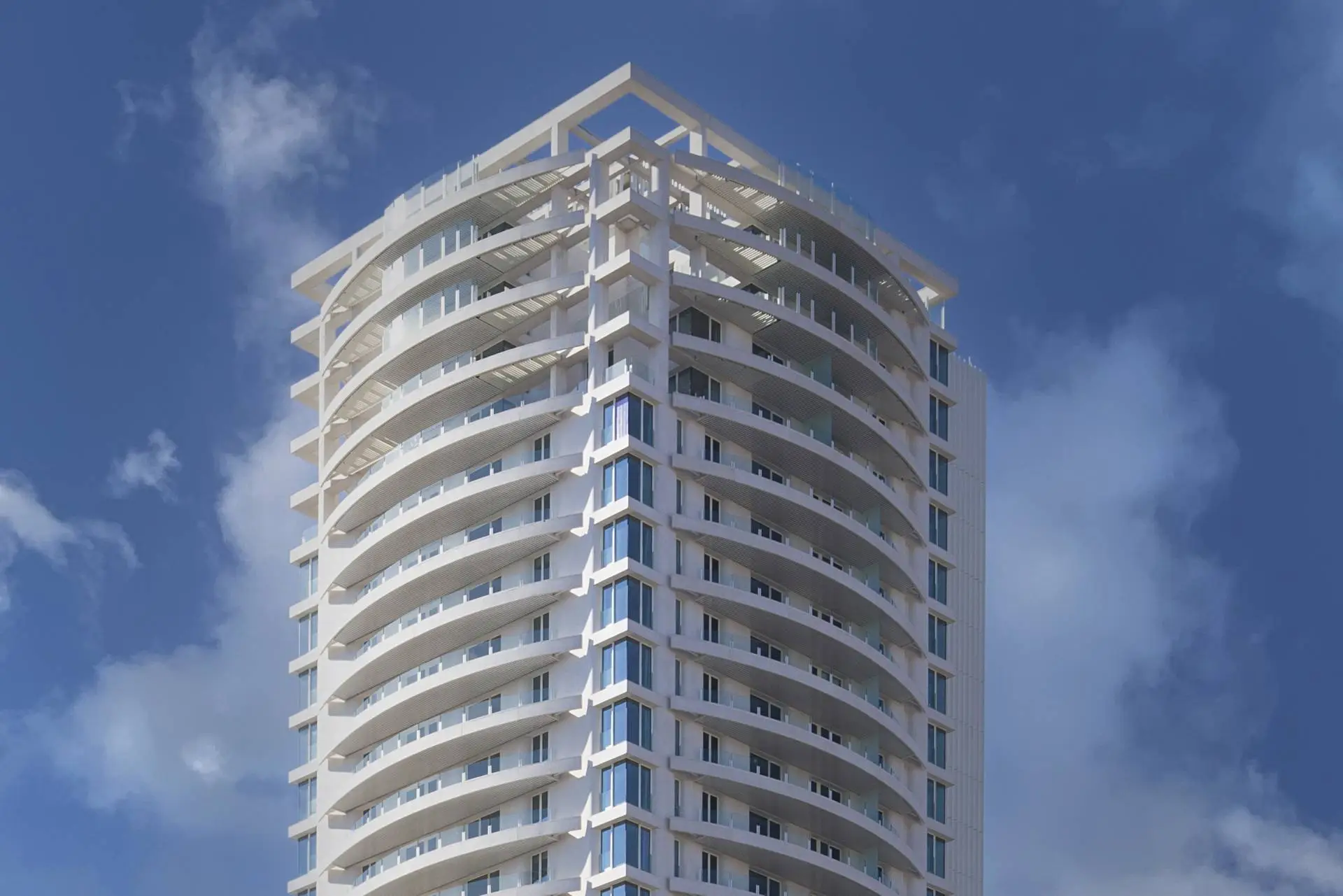 Trattandosi di un grattacielo, la gestione della luce è stata un aspetto chiave nel lavoro di Bofill. La facciata presenta ampie aperture dove le nostre tende a rullo Zi-Box sostituiscono le tapparelle tradizionali. Queste tende sono dotate di tessuto Blackout che garantisce comfort visivo, acustico e termico. Grazie alle guide Easy Zip, il sistema Zi-Box assicura oscuramento totale e massima privacy.