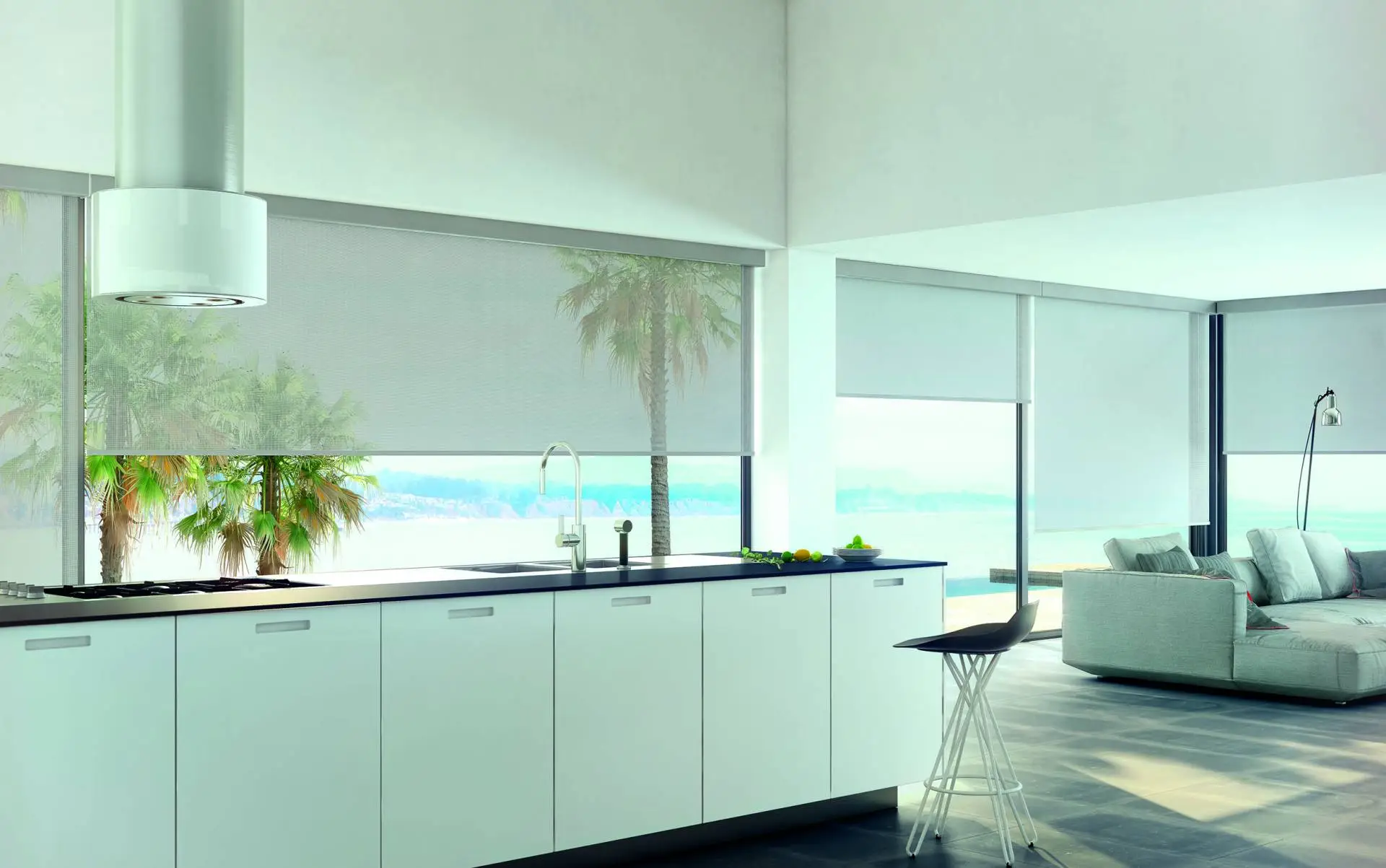 La Q-Box è una tenda a rullo con cassonetto decorativo dalle linee rette, realizzato al 100% in alluminio, che si integra perfettamente in qualsiasi ambiente interno.