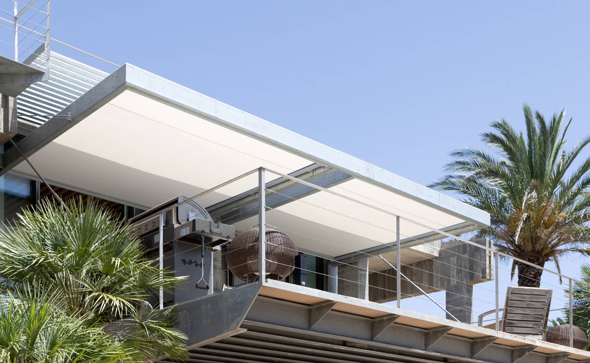 Il suo design consente un’integrazione totale nelle chiusure vetrate, offrendo ombra e riducendo l’effetto serra all’interno.