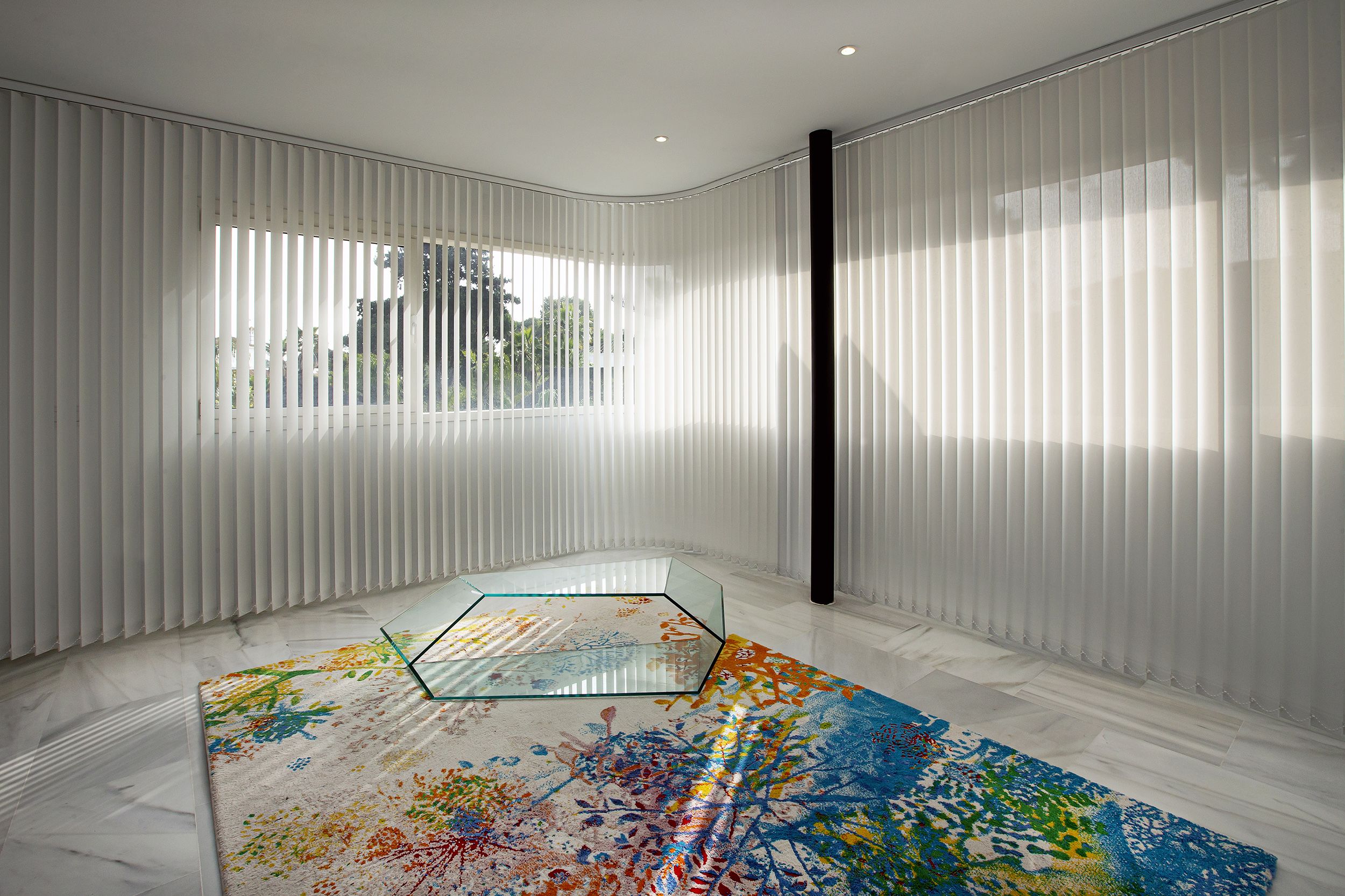 Las cortinas verticales Bandalux permiten controlar la luz con lamas que giran hasta 180º. Su diseño versátil cubre acristalamientos de hasta 6×6 m y proyecta la atmósfera adecuada en cada momento. Gracias a su riel adaptativo, se integran fácilmente en cualquier espacio, tanto público como residencial.