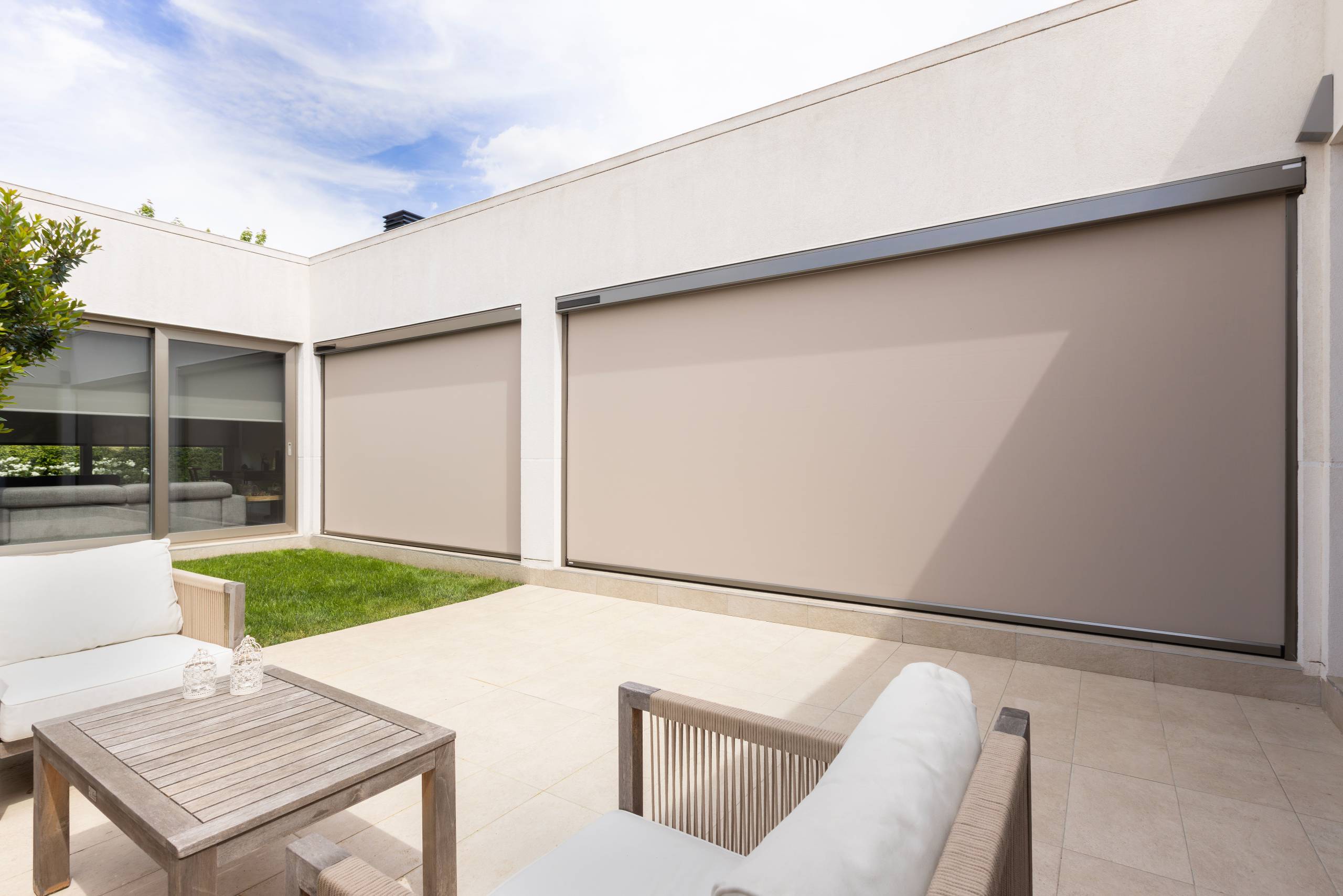 La gama de soluciones solares de Bandalux no necesita instalación eléctrica, ya que el panel solar integrado capta los rayos solares y los transforma en energía eléctrica para cargar la batería del motor, lo que las convierte en cortinas 100% autónomas.