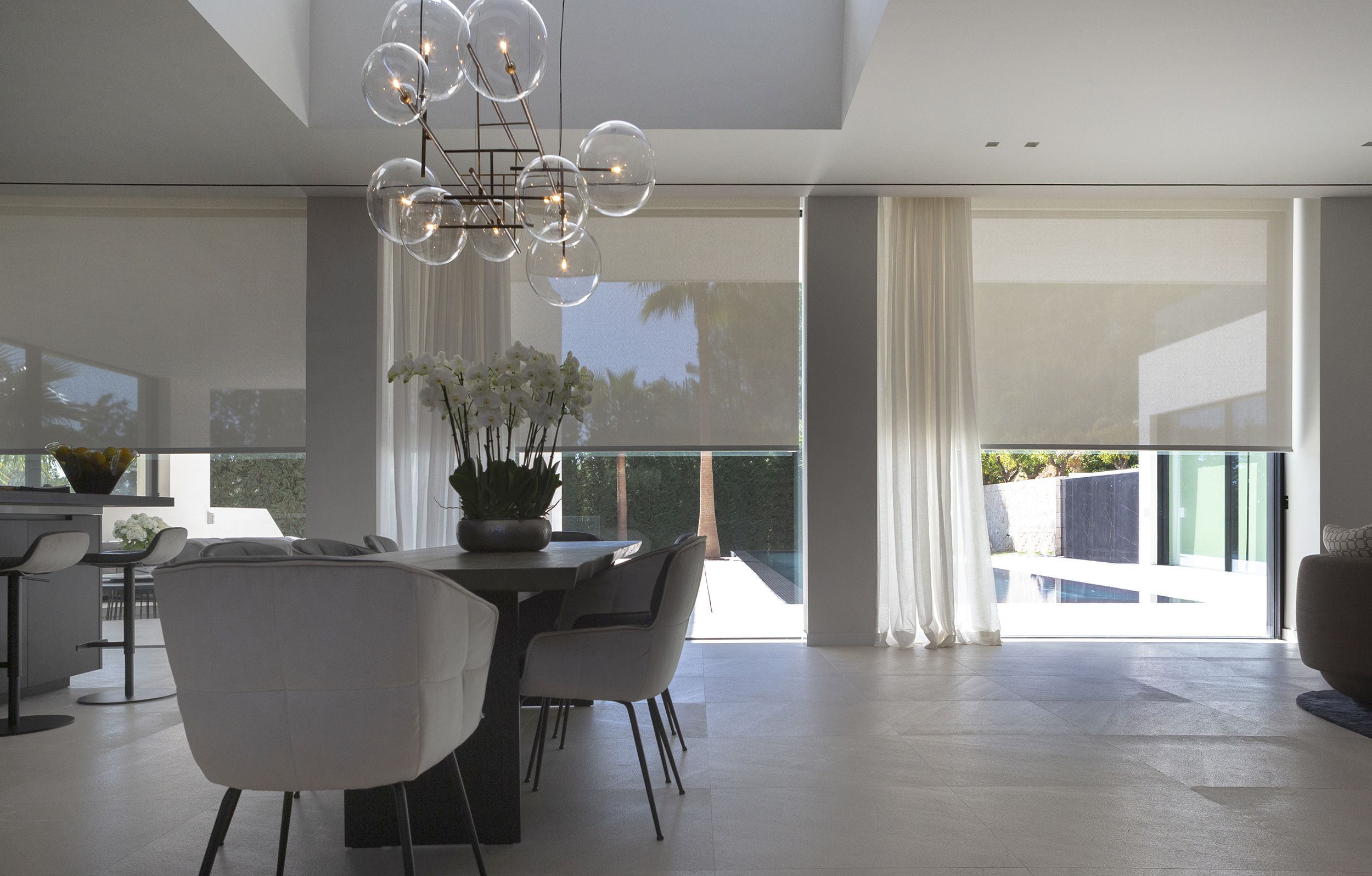 El arquitecto David Domínguez Rueda seleccionó el sistema BSO de cortinas enrollables y cortinas tradicionales para un óptimo control solar.
