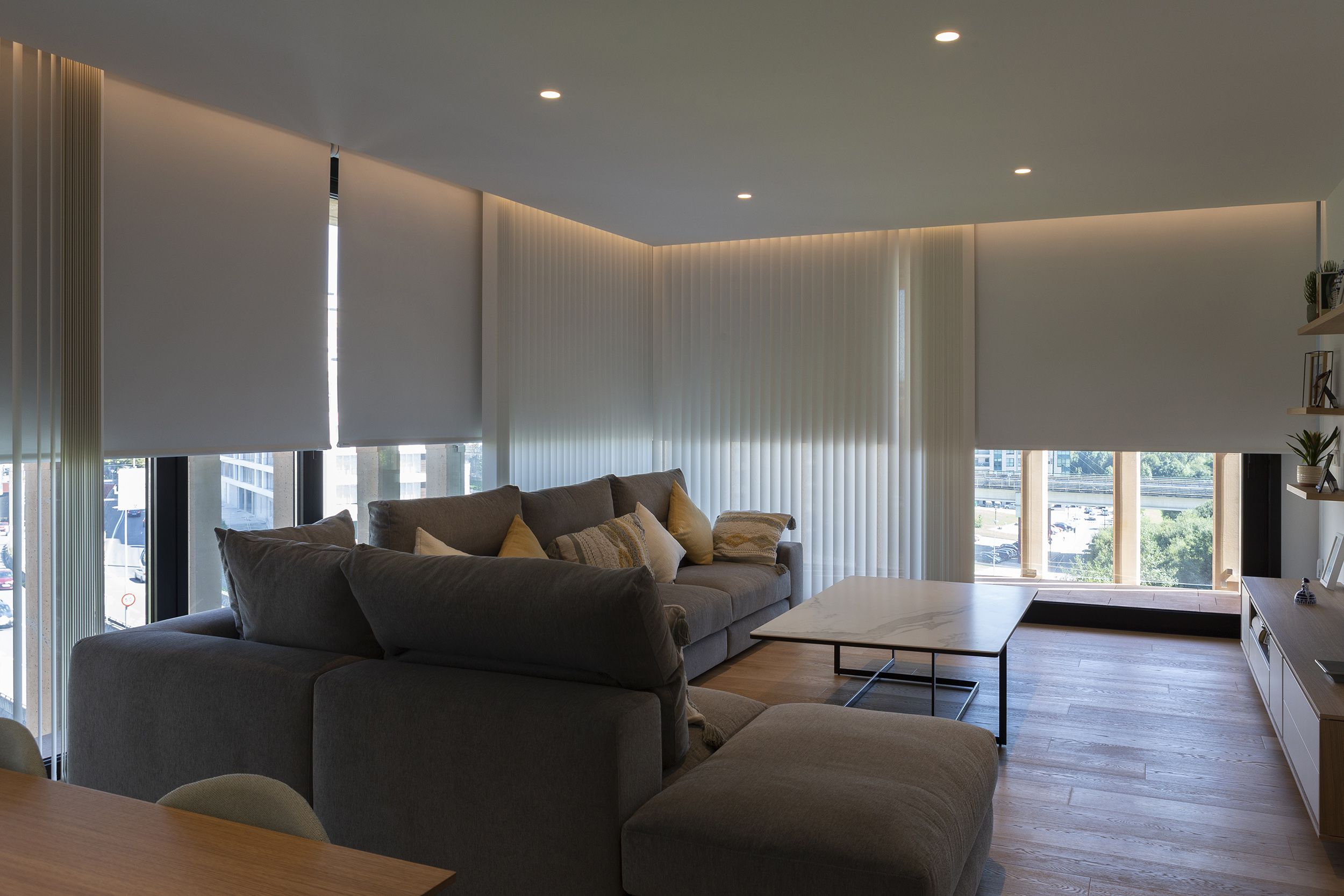 Bandalux vertical blinds were chosen as the solar control system, creating visual harmony as well as efficient management of sunlight.