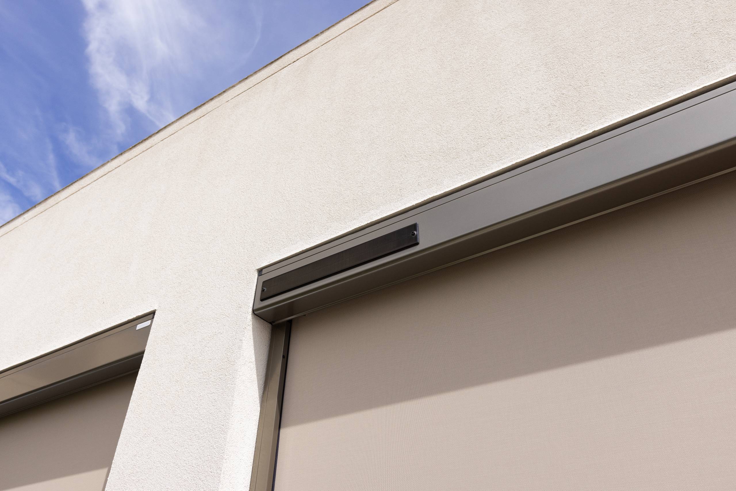Z-Box Solar is an outdoor zip roller shade with zipper-guided side channels that ensure maximum fabric tension and wind resistance.